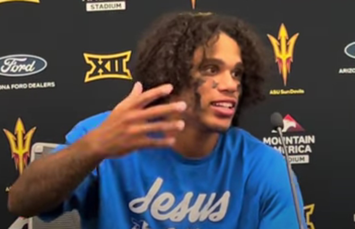 During a press conference following his team’s 26-22 victory against Texas Tech University on Saturday, Arizona State University football player Jordyn Tyson wore a T-shirt emblazoned with the words “Jesus Won.” During his remarks, he described the Bible as the “instructions to life.”